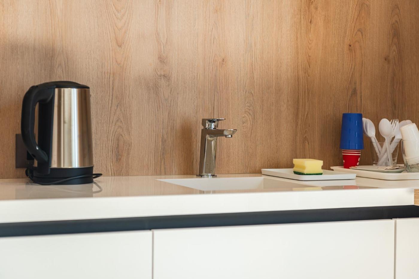 One-Bedroom Apartment with Sea View. Featuring a private entrance, this air-conditioned apartment is comprised of 1 living room, 1 separate bedroom and 1 bathroom with a shower and a hairdryer. Meals can be prepared in the kitchen, which is fitted with a stovetop, a refrigerator, kitchenware and an oven. Boasting a balcony with sea views, this apartment also offers a coffee machine and a flat-screen TV with satellite channels. The unit offers 3 beds. ;