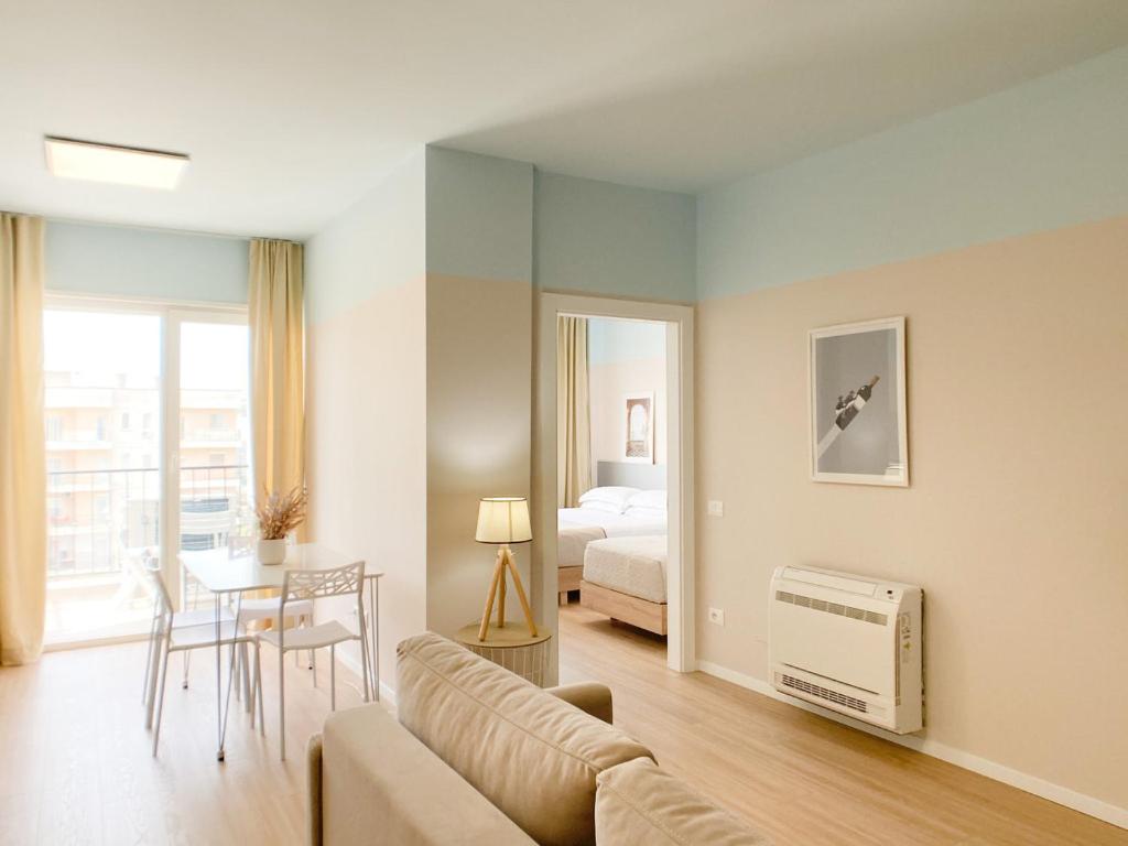 Apartment with Sea View. Featuring a private entrance, this air-conditioned apartment comprises 1 living room, 1 separate bedroom and 1 bathroom with a walk-in shower and a hairdryer. The fully equipped kitchen features a stovetop, a refrigerator, kitchenware and an oven. Boasting a balcony with sea views, this apartment also provides a washing machine and a flat-screen TV. The unit offers 3 beds.