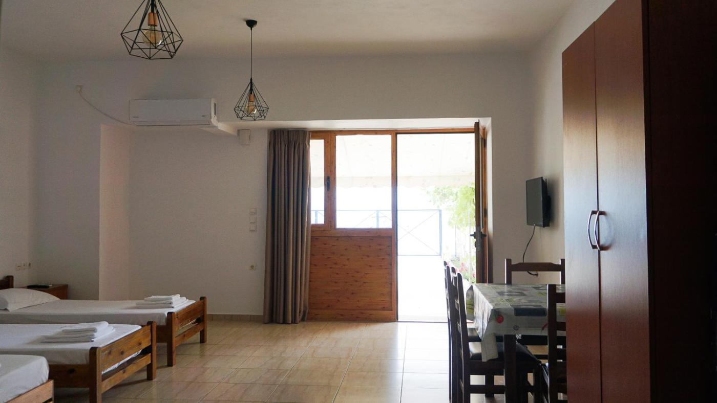Quadruple Room with Sea View. The quadruple room provides air conditioning, a wardrobe, as well as a private bathroom featuring a bath and a shower. Boasting a balcony, this quadruple room also offers heating and a flat-screen TV. The unit offers 3 beds.