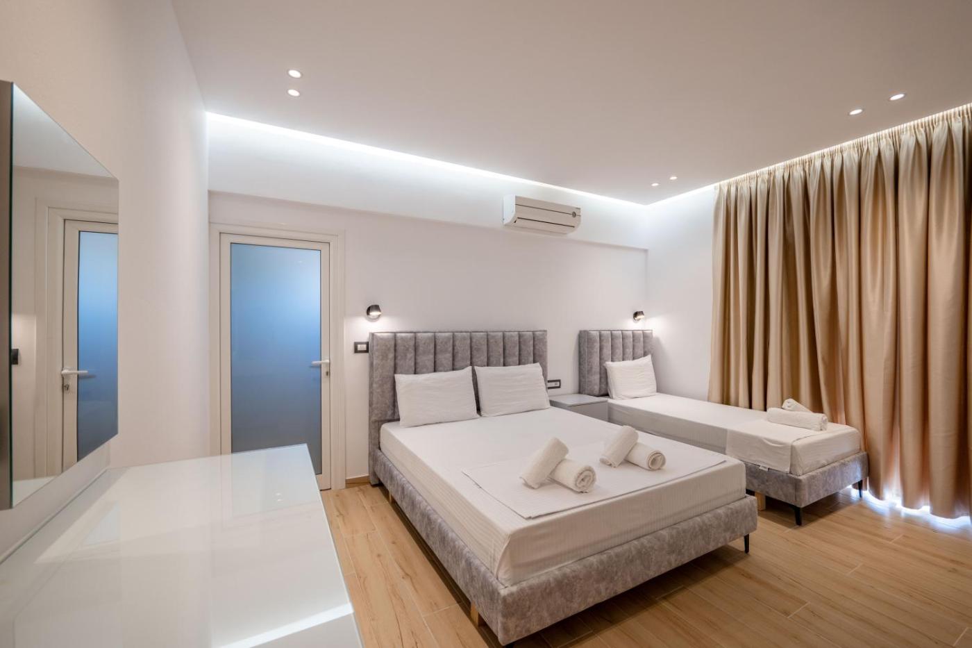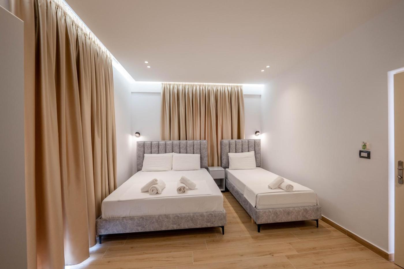 Triple Room with Garden View. The triple room offers air conditioning, soundproof walls, a balcony with sea views as well as a private bathroom featuring a shower. The unit offers 2 beds. ;