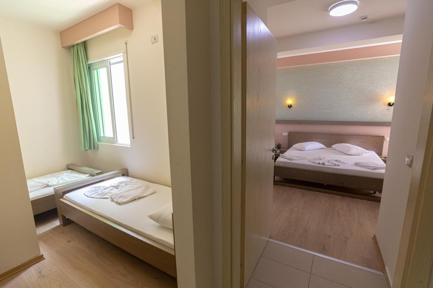Two Bedroom Suite with Balcony and Sea View. The air-conditioned suite has 1 bedroom and 1 bathroom with a walk-in shower and a bidet. Boasting a balcony with sea views, this suite also offers a seating area and a flat-screen TV with cable channels. The unit has 3 beds. ;